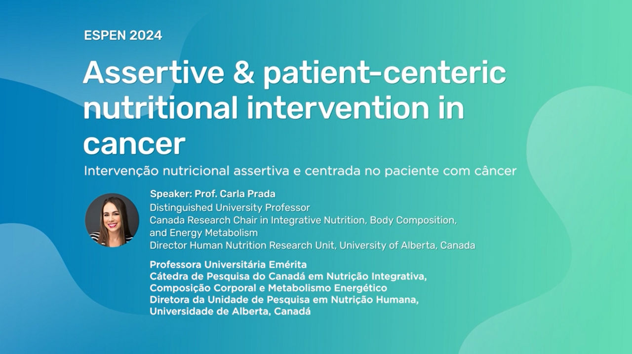No vídeo, a Dra. Carla Prado discorre sobre o papel da massa muscular no tratamento do câncer e a importância de uma abordagem assertiva para intervenção nutricional, mostrando dados recentes e alguns desafios e perspectivas importantes, sempre com o olhar centrado no paciente oncológico. Assista ao vídeo e saiba mais.
